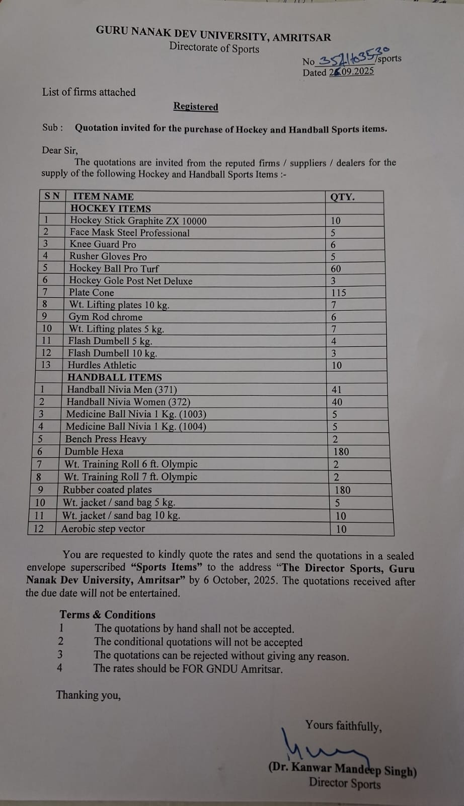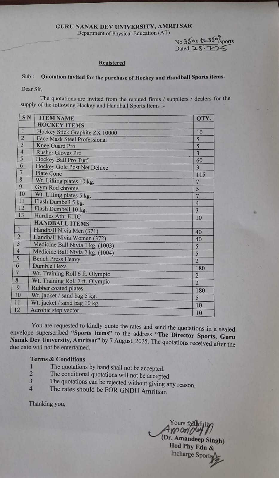 | Quotations are invited for the supply of various items in the Deptt. of Physics, GNDU, Amritsar. |