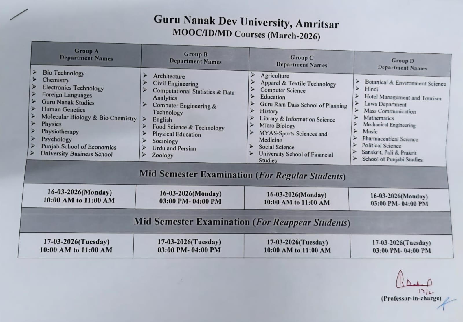 • Provisional Seniority List of SC/ST Category Employees (non-teaching) working on regular basis on different cadre in G.N.D.U. Click here for Details