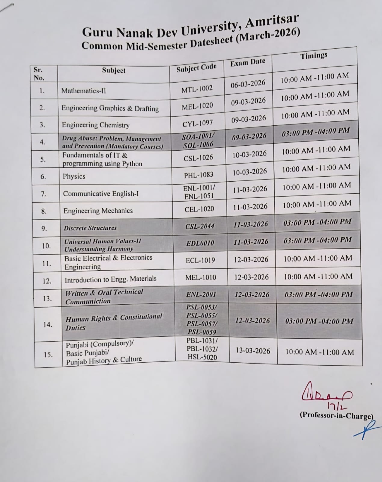 • Provisional Common Seniority List of Mali Staff working in various Departments & Campuses of Guru Nanak Dev University. Click here to View.